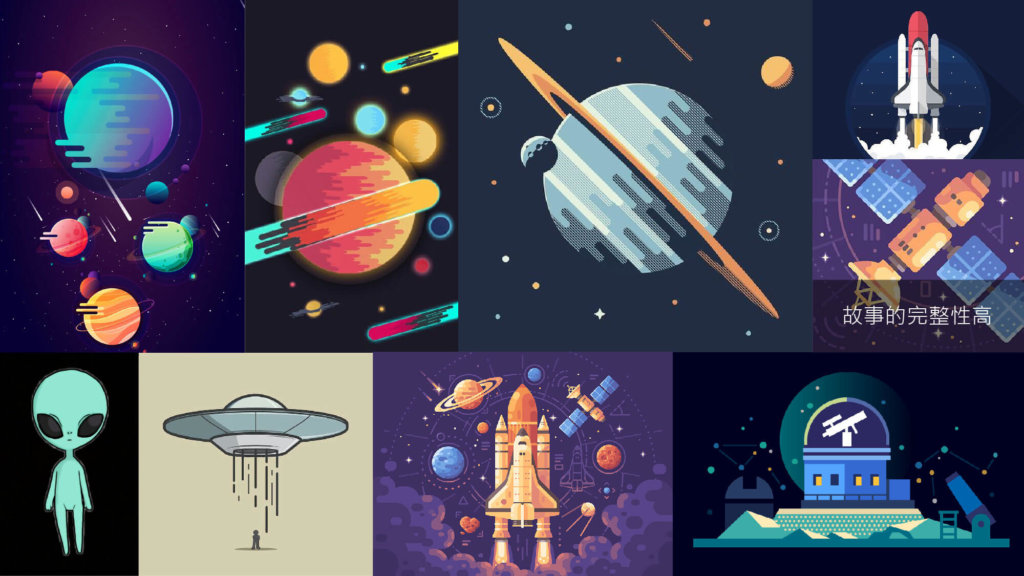 太空的議題與元素非常多 , 有星球 , 火箭 , 衛星 , 發射台 , 天文望遠鏡 , 天文觀星站 , 外星人 , 飛碟 , 軌道等 . 都可以發展成產品的一部分 , 或是獨立產品 , 甚至可以脫離吸管杯 , 做成其他產品 , 品牌就升級成一個賣故事的品牌 , 可以跨足到任何相關產業 .