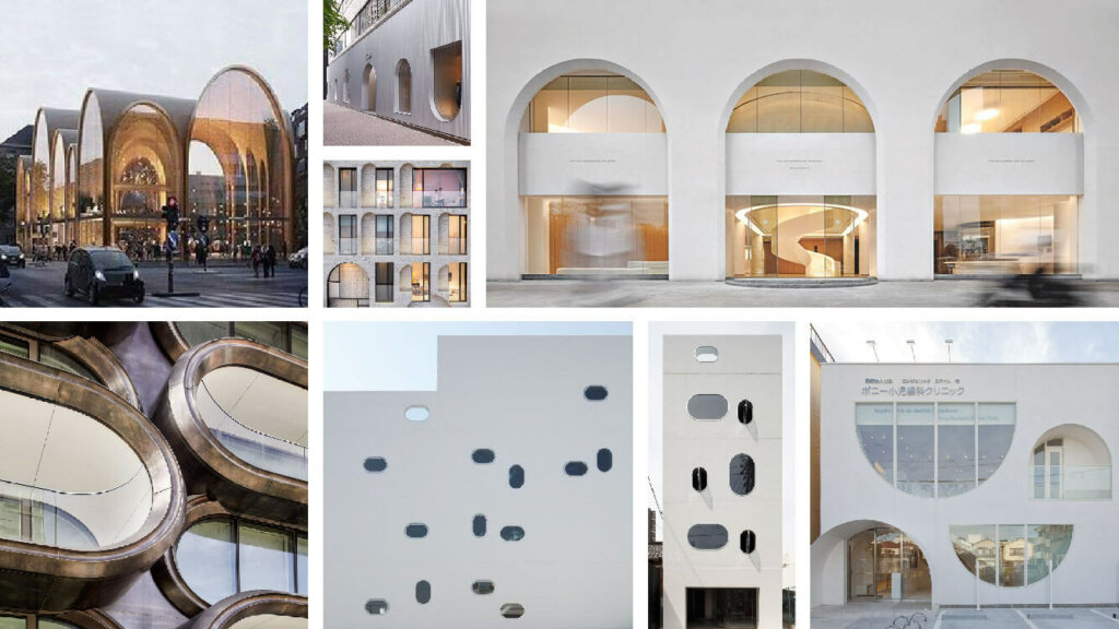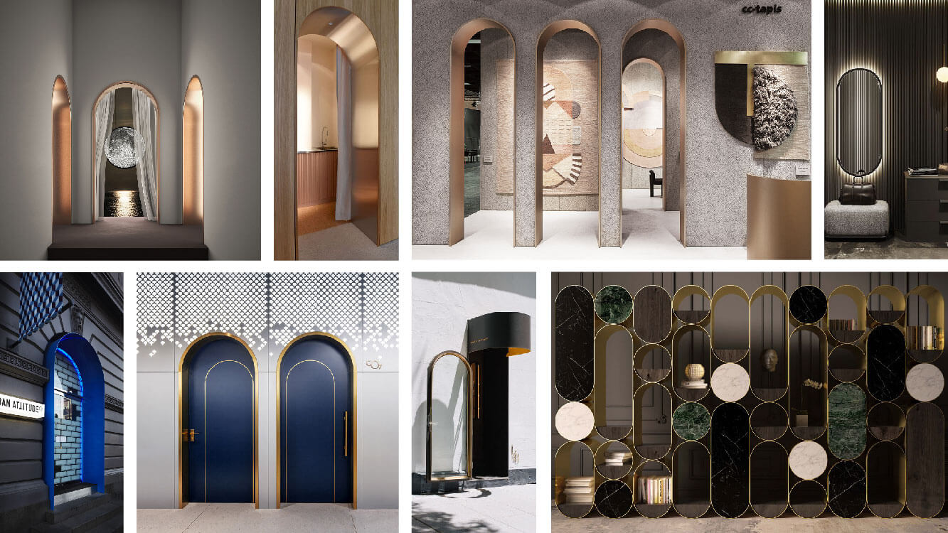 許多的門與窗都是優美的類拱型演變的長條圓形 . 輔以銅色金屬材質 , 或石材 , 呈現時尚高貴感 .