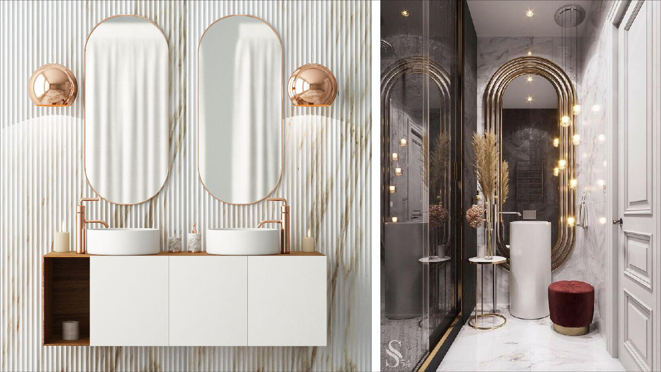 長條圓形是一種獨特的設計風格 . 有門 , 櫃子 , 鏡子等 .