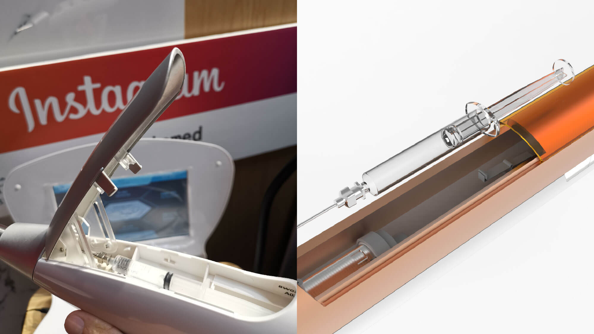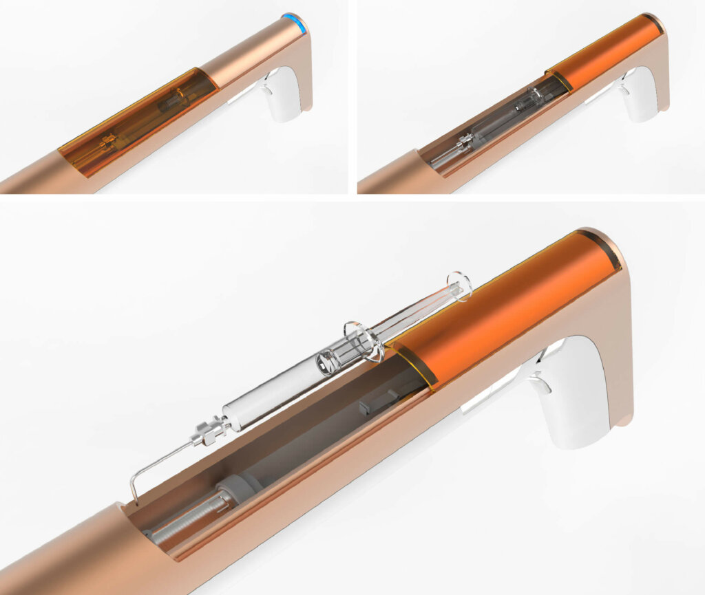 解決 : 改為滑蓋形式 , 不需前傾 , 針管蓋不易斷裂 . 且成本更低 .