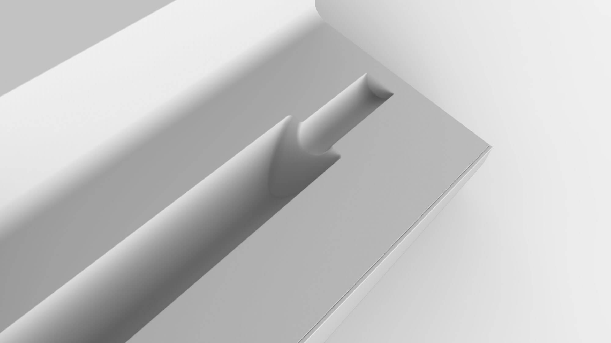 避開槍的語意 , 故將板機改為優雅的弧面薄片按鍵 .