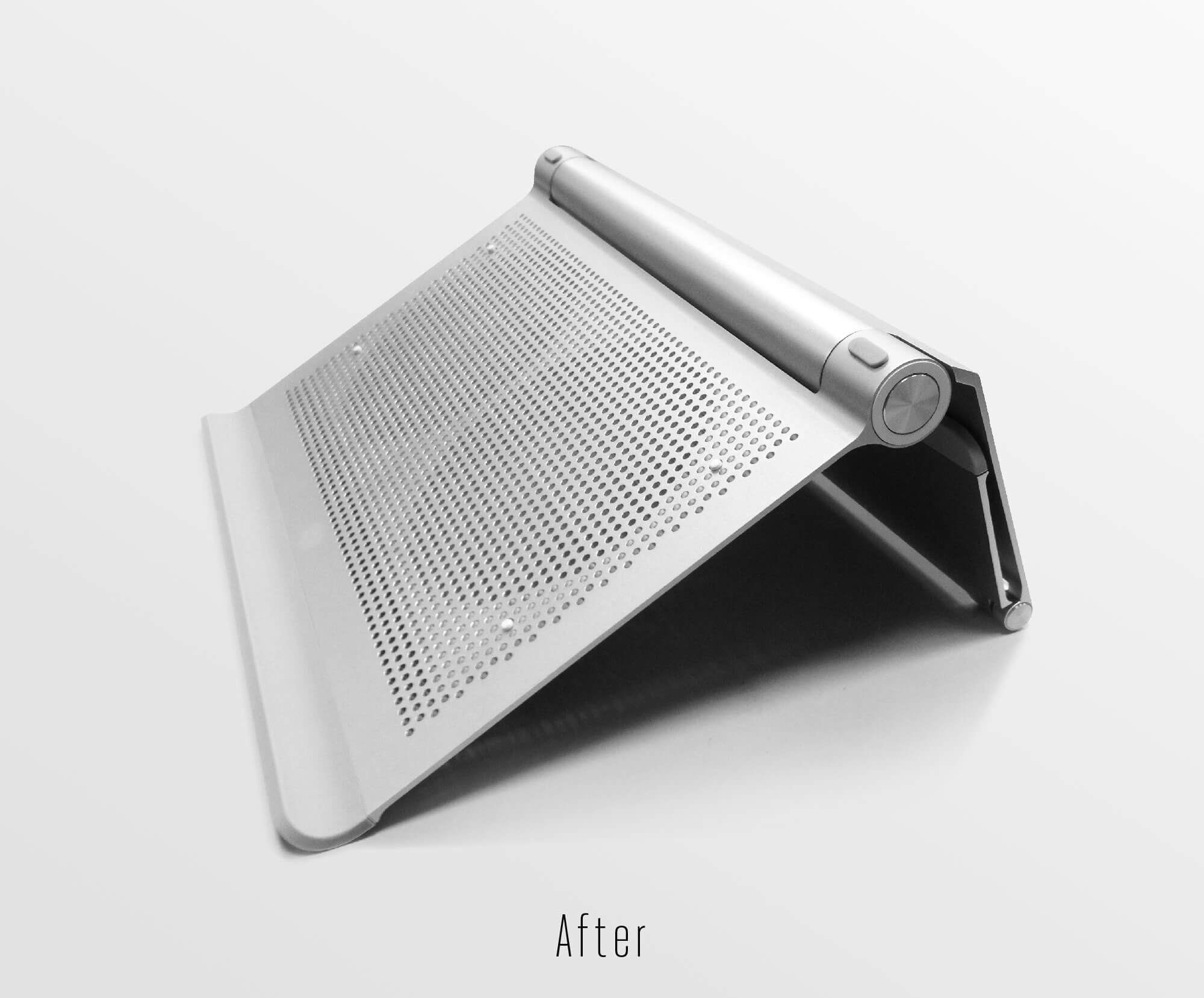 顏色由原本較為工業感的黑色 , 轉變為輕盈的淺銀色 . 姿態也由結構感 , 轉變為圓潤與優雅 . 脫離了原始較為硬邦邦的感覺 ,