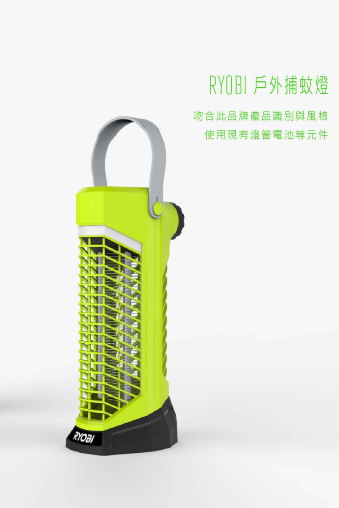 RYOBI 為電動工具與戶外設備之全球市佔率第一的國際品牌 . 我們為此品牌設計新一代的戶外捕蚊燈 .